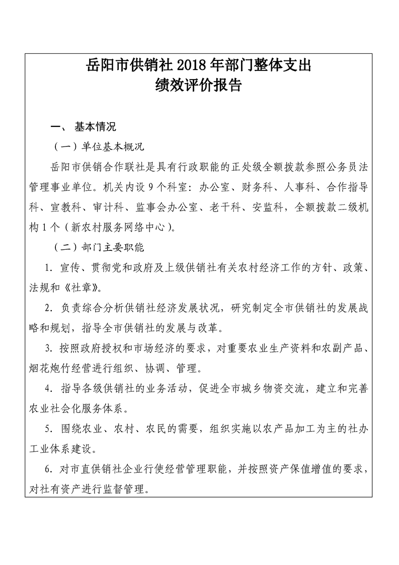 美好365app官方下载_mobile365_beat365登录平台供销社2018年度整体支出绩效评价自评报告